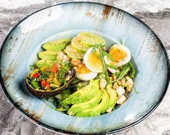 €12.50Avocado, gemengde salade, gekookte ei, walnoten en croutons